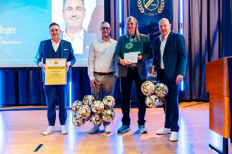 Eine besondere Auszeichnung gab es für Jonas Kelp. Der Nachwuchstrainer des FVS gewann beim Wettbewerb "Fußballheld" eine Bildungsreise nach Spanien. Zudem verlieh Voncina dem sichtlich überraschten FVS-Boss Peter Denzel die Verbandsehrennadel.