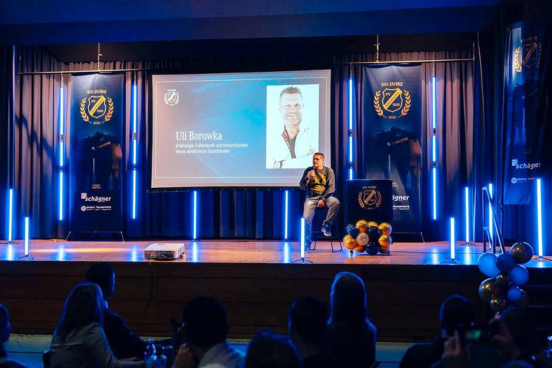 Zum Abschluss hielt Stargast Uli Borowka einen gut einstündigen Vortrag über sein bewegtes Leben. In seiner kompletten Zeit als Fußballprofi bei Borussia Mönchengladbach und bei Werder Bremen war er Alkoholiker, lange Zeit auch abhängig von Medikamenten. Gnadenlos offen erzählte er seine Geschichte. Sein übliches Tagespensum damals: eine Kiste Bier, eine Flasche Whisky und eine Flasche Wodka. Nur sein starker Körper verhinderte den Suizid.